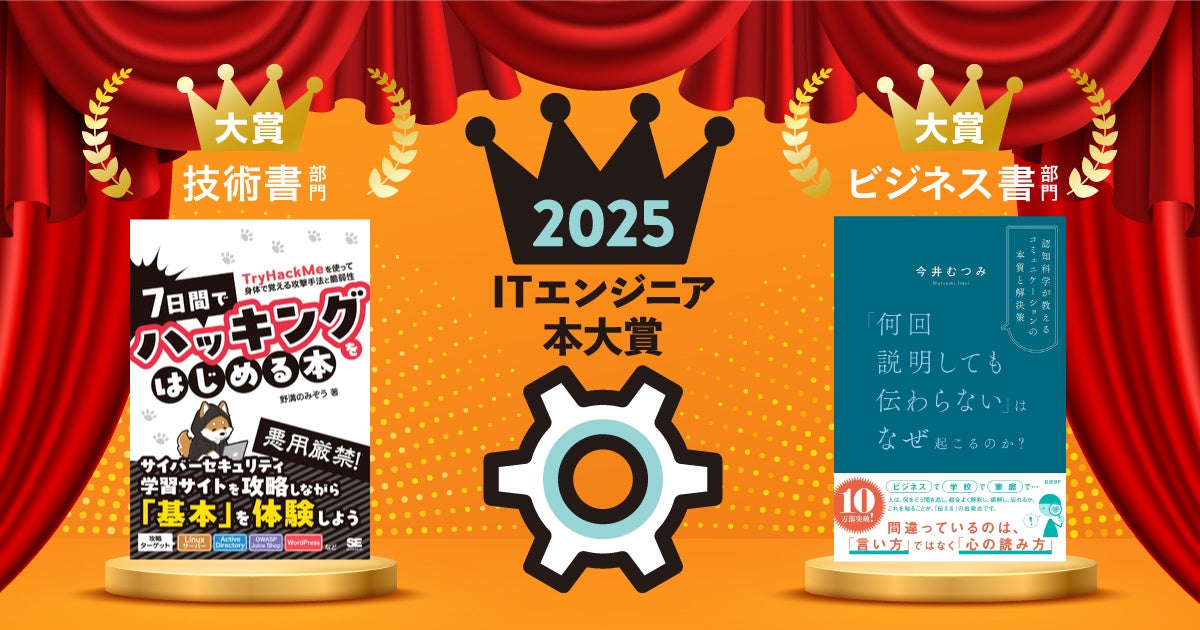 技術書部門大賞に『7日間でハッキングをはじめる本 TryHackMeを使って身体で覚える攻撃手法と脆弱性』(翔泳社)、ビジネス書部門大賞に『「何回説明しても伝わらない」はなぜ起こるのか? 認知科学が教えるコミュニケーションの本質と解決策』(日経BP)が選ばれました。