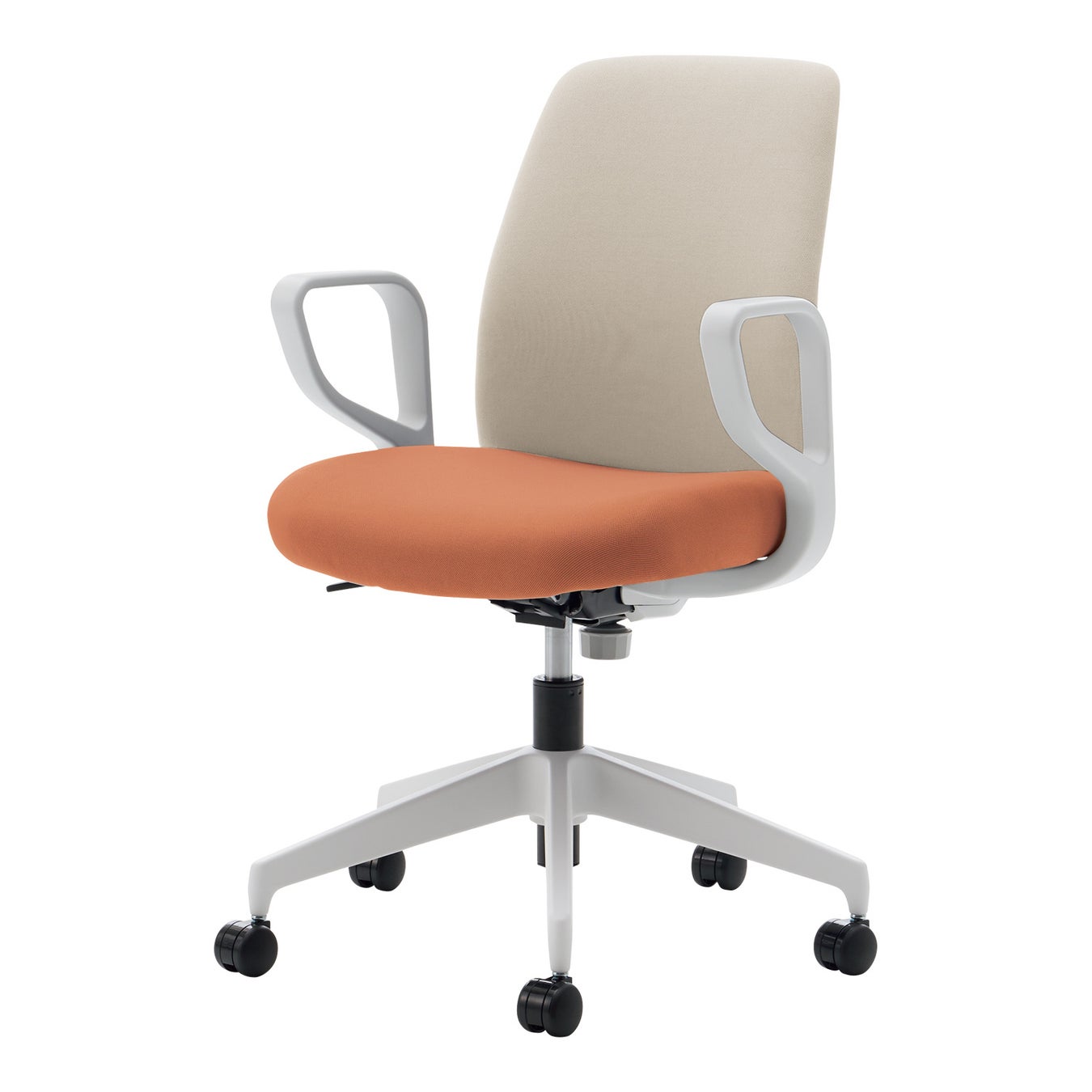 働き方、ツールの多様化に伴う着座姿勢の変化に対応した新機能を搭載。前傾姿勢から後傾姿勢まで最適にサポートします。滑らかな曲面を描く背フレームは見た目に美しく、シンプルにまとめたデザインがさまざまな空間に調和します。