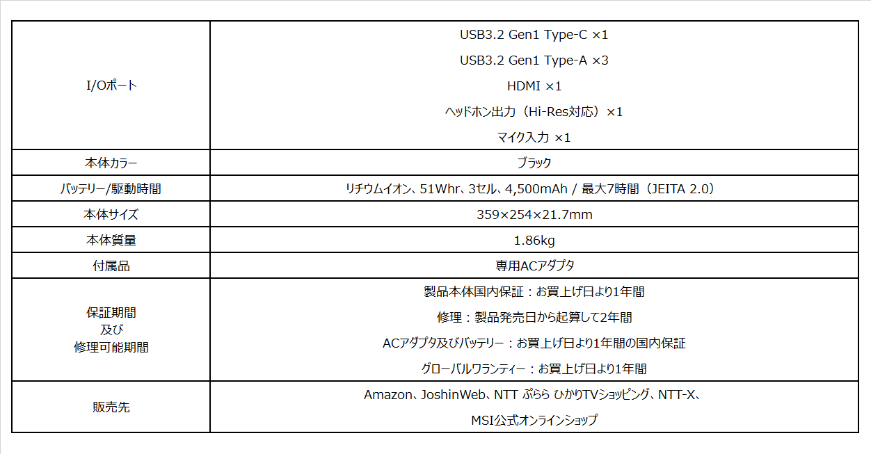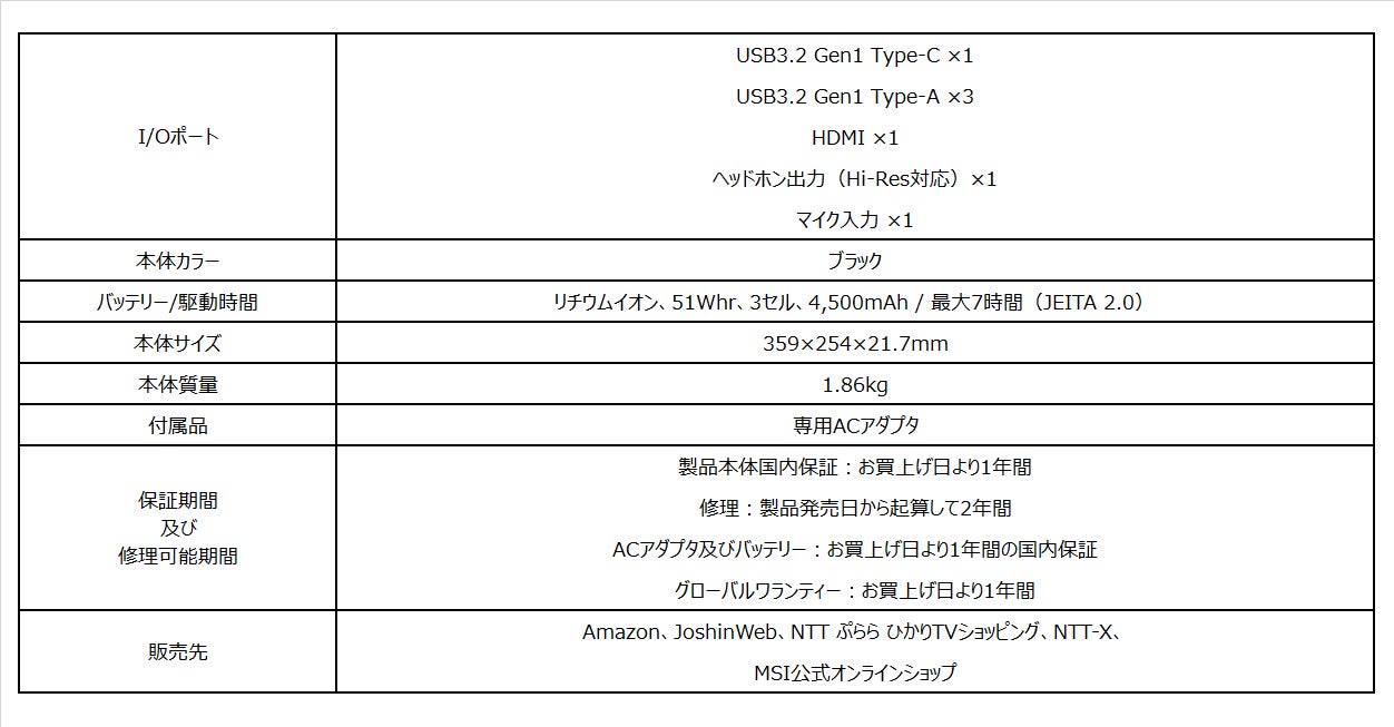 ・GF63 Thin 11Uシリーズ製品ページ: https://jp.msi.com/Laptop/GF63-Thin-11UX