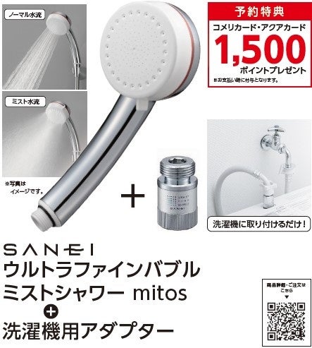 SANEI ウルトラファインバブル ミストシャワーmitos+洗濯機用アダプター