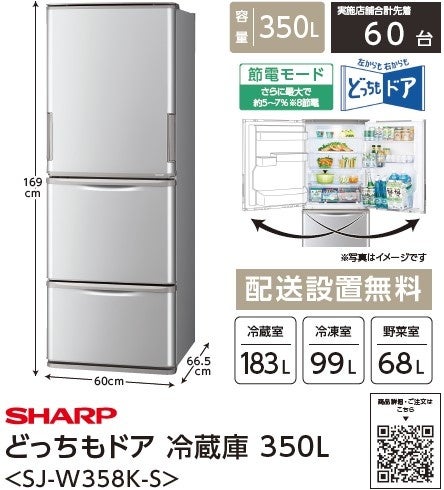 SHARP どっちもドア 冷蔵庫 350L<SJ-W358K-S>
