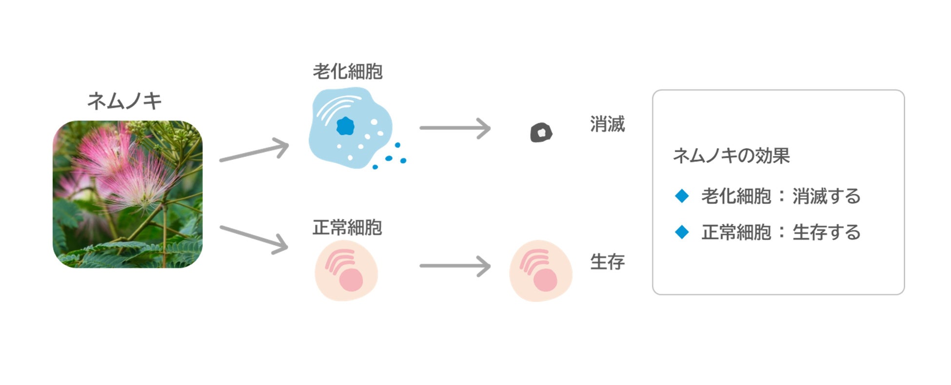 ネムノキの老化細胞を除去する効果を初めて見出しました。
