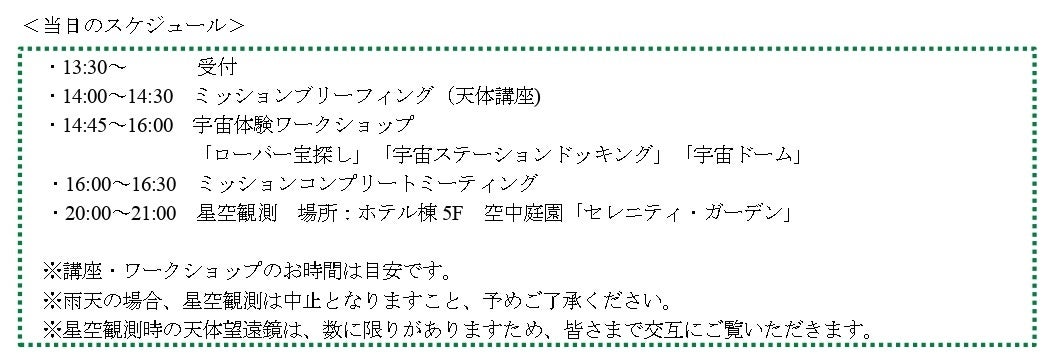 ・天体講座&宇宙体験ワークショップ(チェックイン日14:00~16:30)