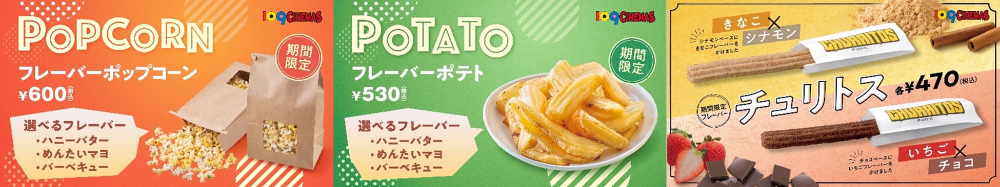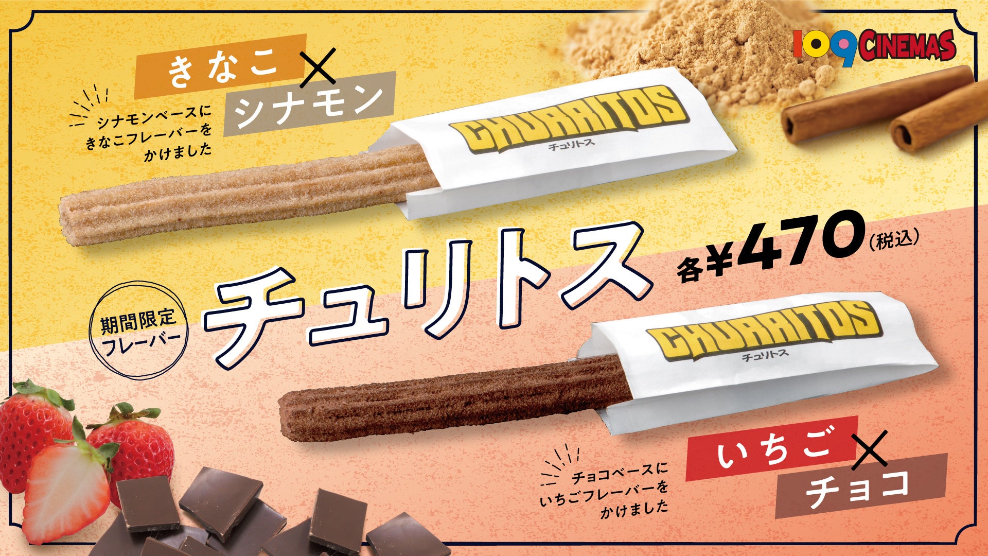 ーをミックスしたきなこ×シナモン味といちご×チョコ味のチュリトスが新登場。他109シネマズで販売して