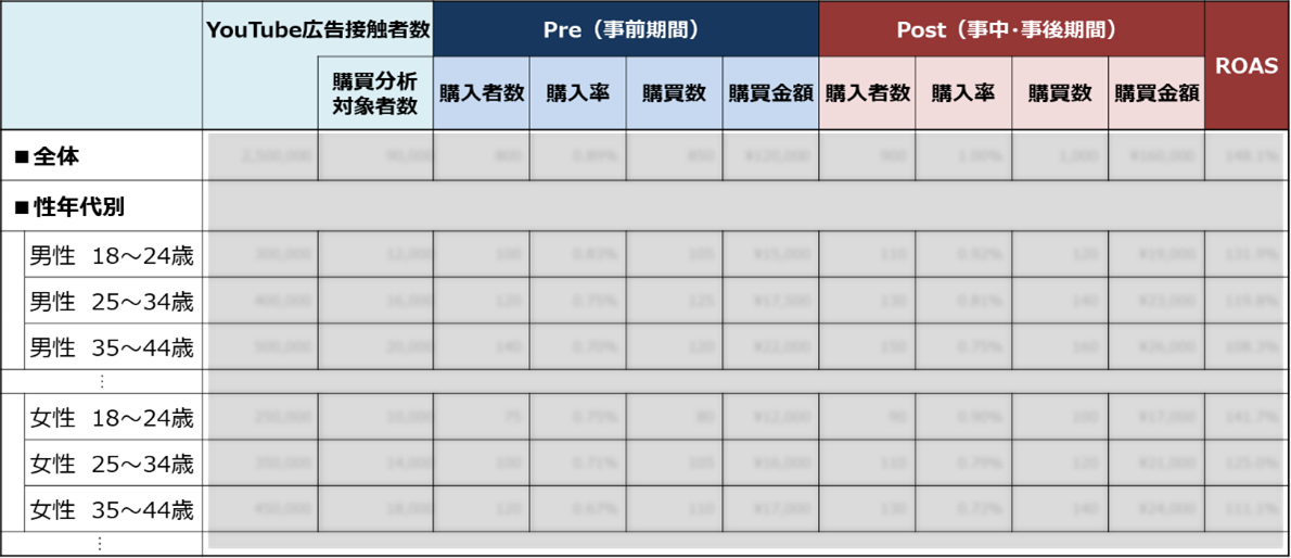 ③アウトプット :広告接触者の購買分析(広告配信前/広告配信後比較、属性別分析など)