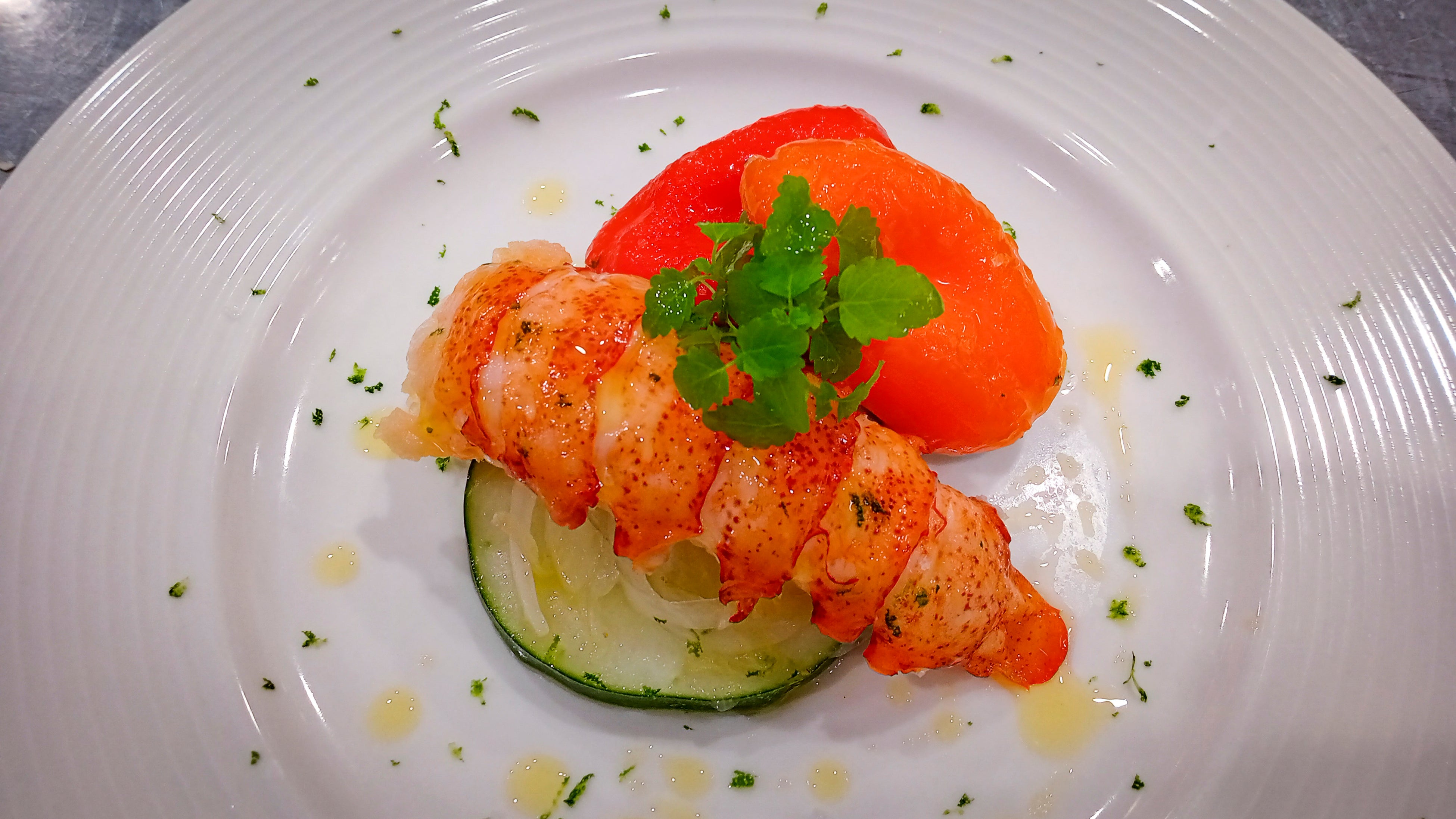 | APPETIZER ・ハーフ ロブスターヌーボー カクテル ・ロブスターテールと夏野菜のセビーチェ ・ロブスターケーキ アメリカンソース&タルタルソース SIDE DISH ・ロブスタービスク ・スチームド ロブスターテール MAIN DISH ・カナダ産ロブスターのスチーム or ロースト 澄ましバター レモン |
