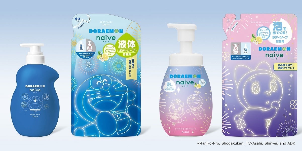 “家族みんなの肌を健やかに”というコンセプトのもと、“家族のお肌を想う”とともに、環境を考えたパッケージで“地球の未来を考える”「ナイーブ」。本年3月、まんが、アニメ、映画と、子どもたちから大人まで愛され続けている大人気キャラクター「ドラえもん」の限定パッケージを発売しました。