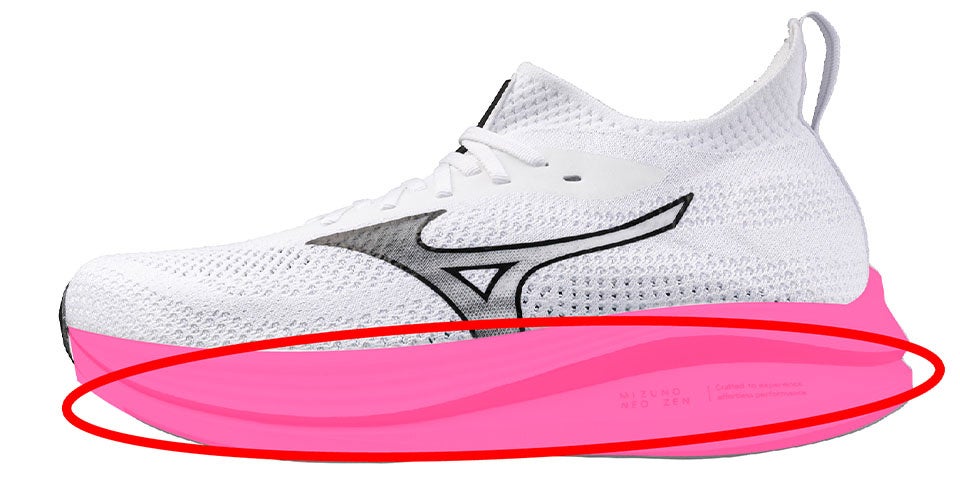 「MIZUNO NEO ZEN」には、ミッドソールに『MIZUNO ENERZY NXT』を超臨界発泡技術で進化させた素材を使用しています。これにより前足部のクッション性が約83%※1、反発性が約66%※1、中足部のクッション性が約48%※1、反発性が約54%※1向上しました。