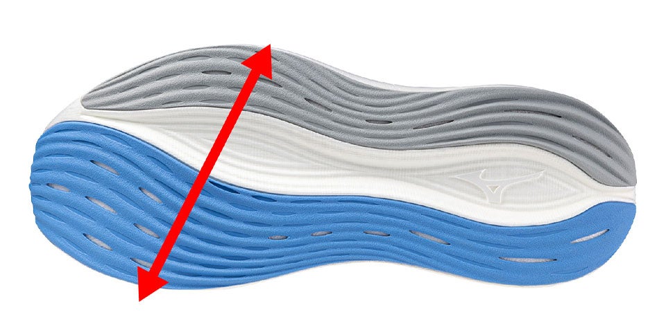 ミッドソール素材『MIZUNO ENERZY NXT(ミズノエナジーネクスト)』を進化させることで、前足部のクッション性が約83%※1、反発性が約66%※1、さらに中足部のクッション性が約48%※1、反発性が約54%※1向上しました。また、ミズノ独自のソール構造『SMOOTH SPEED ASSIST(スムーズスピードアシスト)』も搭載しており、ふくらはぎ周辺の筋肉にかかる負担を軽減、スムーズなミッドフット走法をアシストし、効率的に走ることができます※2。