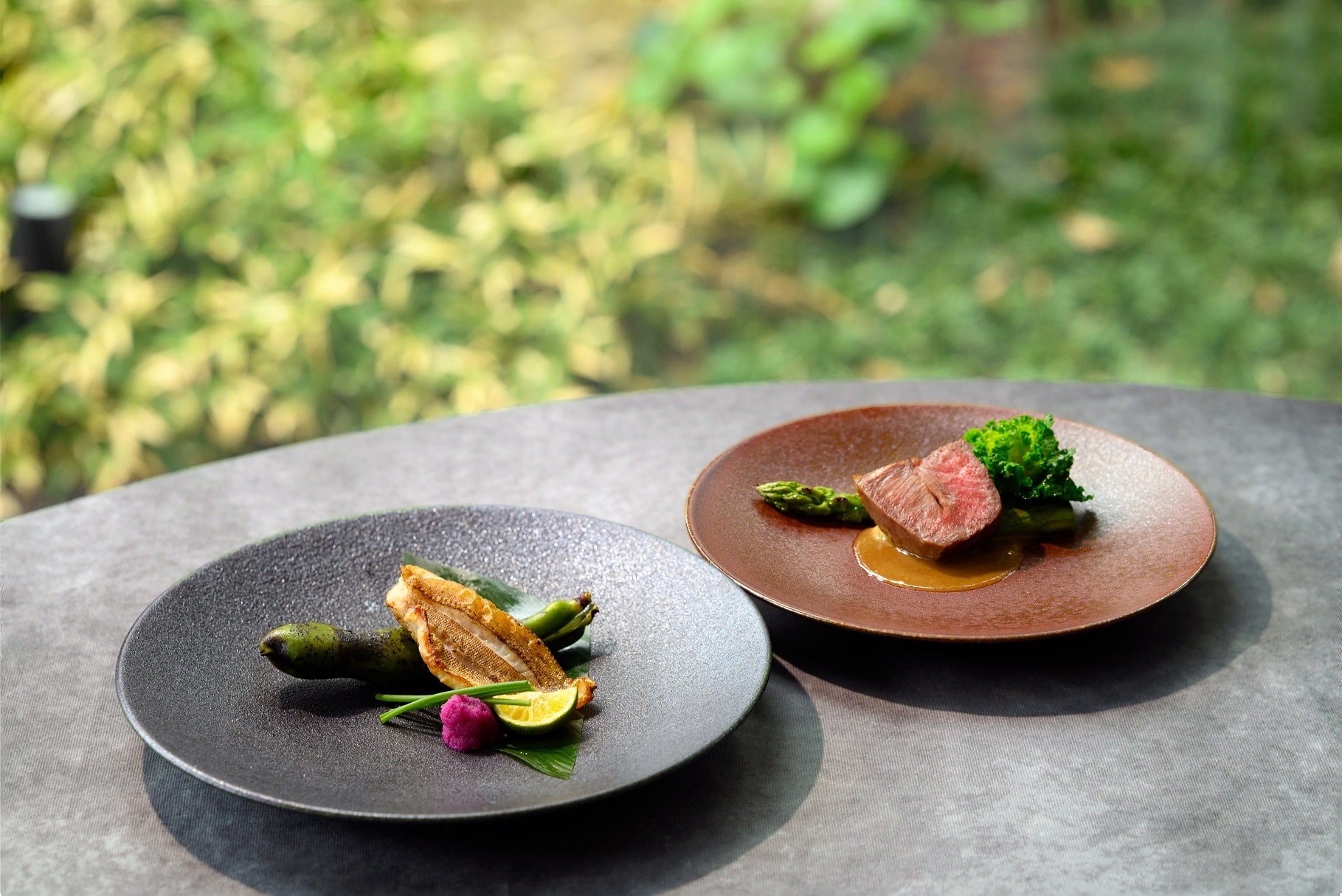 イベント初日である4月18日(火)は、1.9ヘクタールを誇る広大な庭園を眺めながら、薄茶とフラワー ライブパフォーマンスを愉しむ「春の茶会」を開催。また、イベント期間中は「春の息吹」をテーマに山菜などの春の食材を使用したコース料理と日本酒のペアリングをお愉しみいただけます。