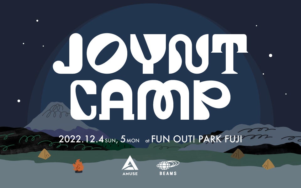 山梨県富士すばるランド内「FUN OUT! PARK FUJI」にて、BEAMSとAMUSEによる第二弾の共同企画を実施します。今回は、富士山麓の自然環境下で、良質な食事とアクティビティを堪能できるキャンプイベント「JOYNT CAMP」を12月4日(日)・12月5日(月)に開催します。