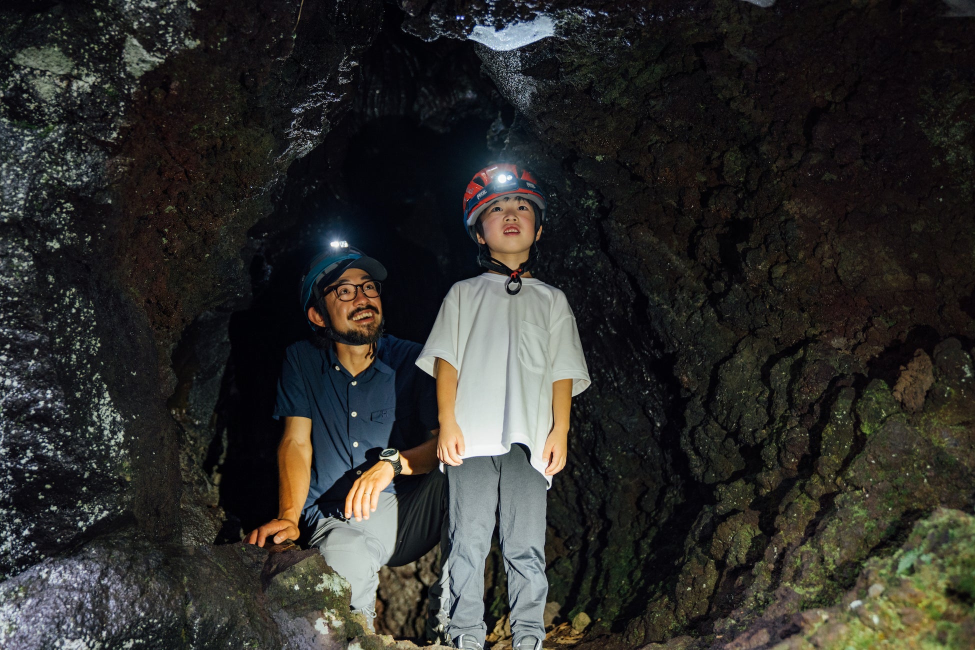 樹海にある天然の洞窟を探検し、富士山の中に入るアドベンチャー体験。