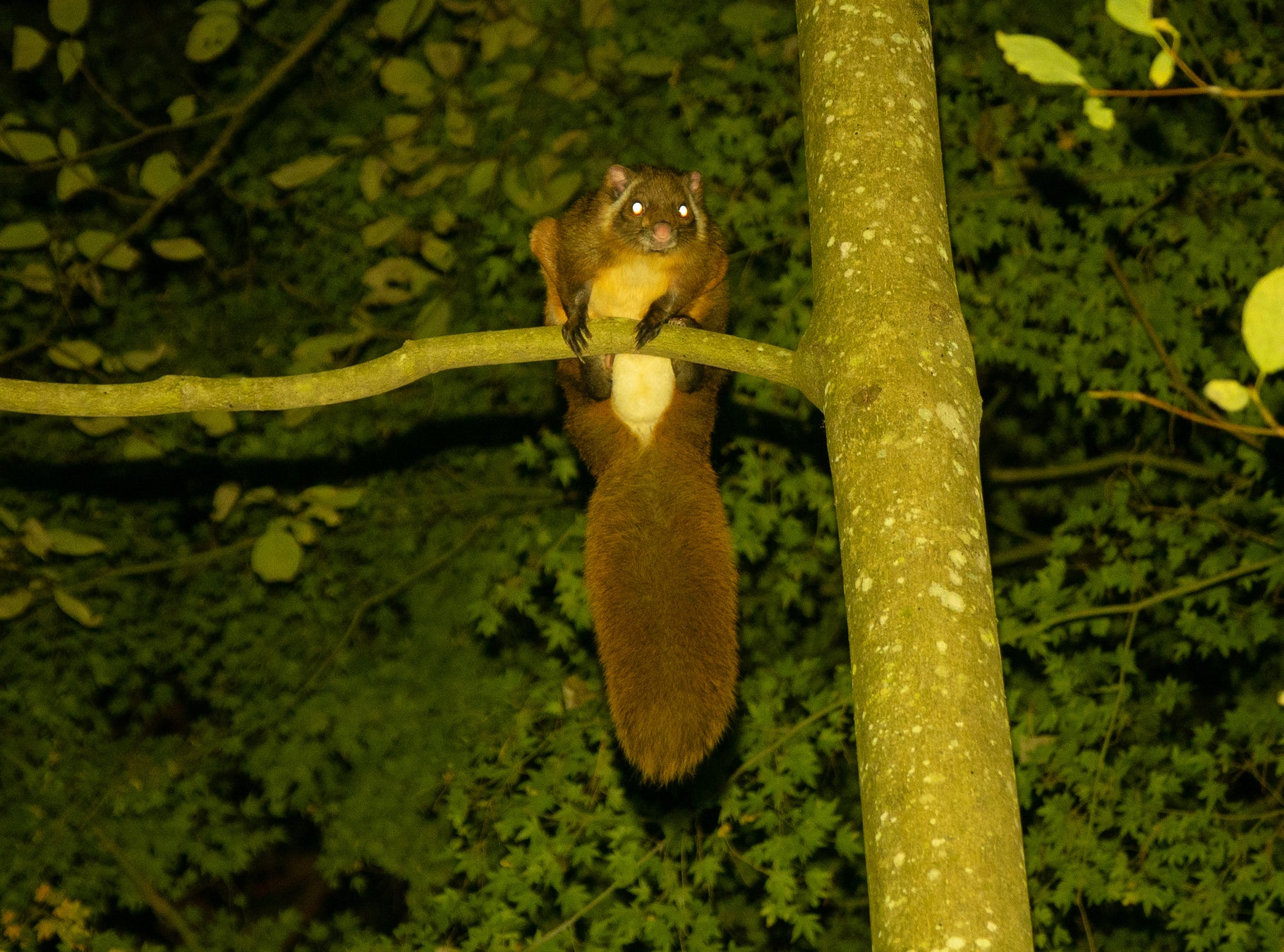 夜の遊園地で夜行性の生き物たちを探しに行きます。暗いなかで五感を研ぎ澄ませて、動物たちを探してみましょう。運が良ければモモンガの滑空が見られるかも。