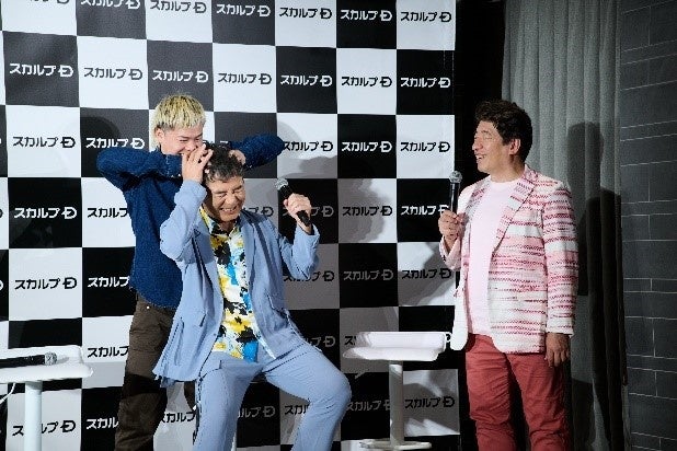 そしてイベントでは、「スカルプD 頭皮マッサージ」を実際にゲストが実演してみることに。天心さんが「俺は今日ヘアスタイル決まっているのでしたくないです」と言い出すと、ダチョウ倶楽部のお二人が「じゃあ俺がやるよ」「いや、俺がやるよ」と名乗り上げ、天心さんが「じゃあ俺がやるよ」と言うと、案の定「どうぞどうぞ」というダチョウ倶楽部のお二人…。お馴染みのくだりの末、天心さんがマッサージされることに決定しました。