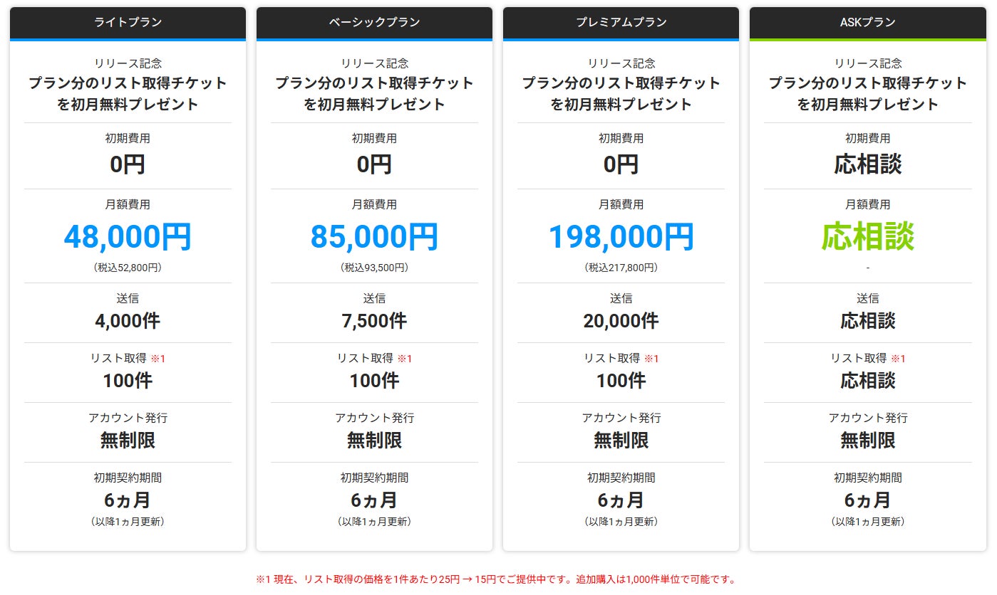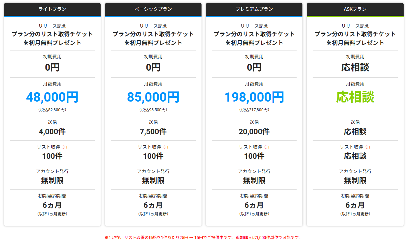 4.8万円~で4000件以上の企業にアプローチが可能(1件あたり12円~)、自社での作業やフォームDM代行などに比べ、大きく時間を短縮しながらより多くの企業に低コストで営業が可能なため、より多くの新規案件獲得が見込めるサービスです。