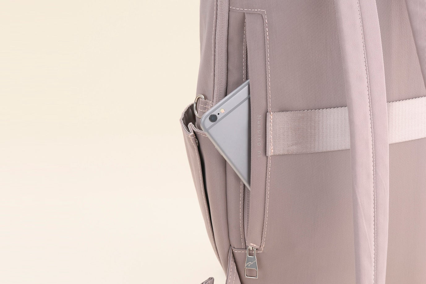 スマートフォンやパスケースを出し入れできる「Napping pl. ポケット」を、リュックを片掛けした際に取り出しやすい外側に配置しました。