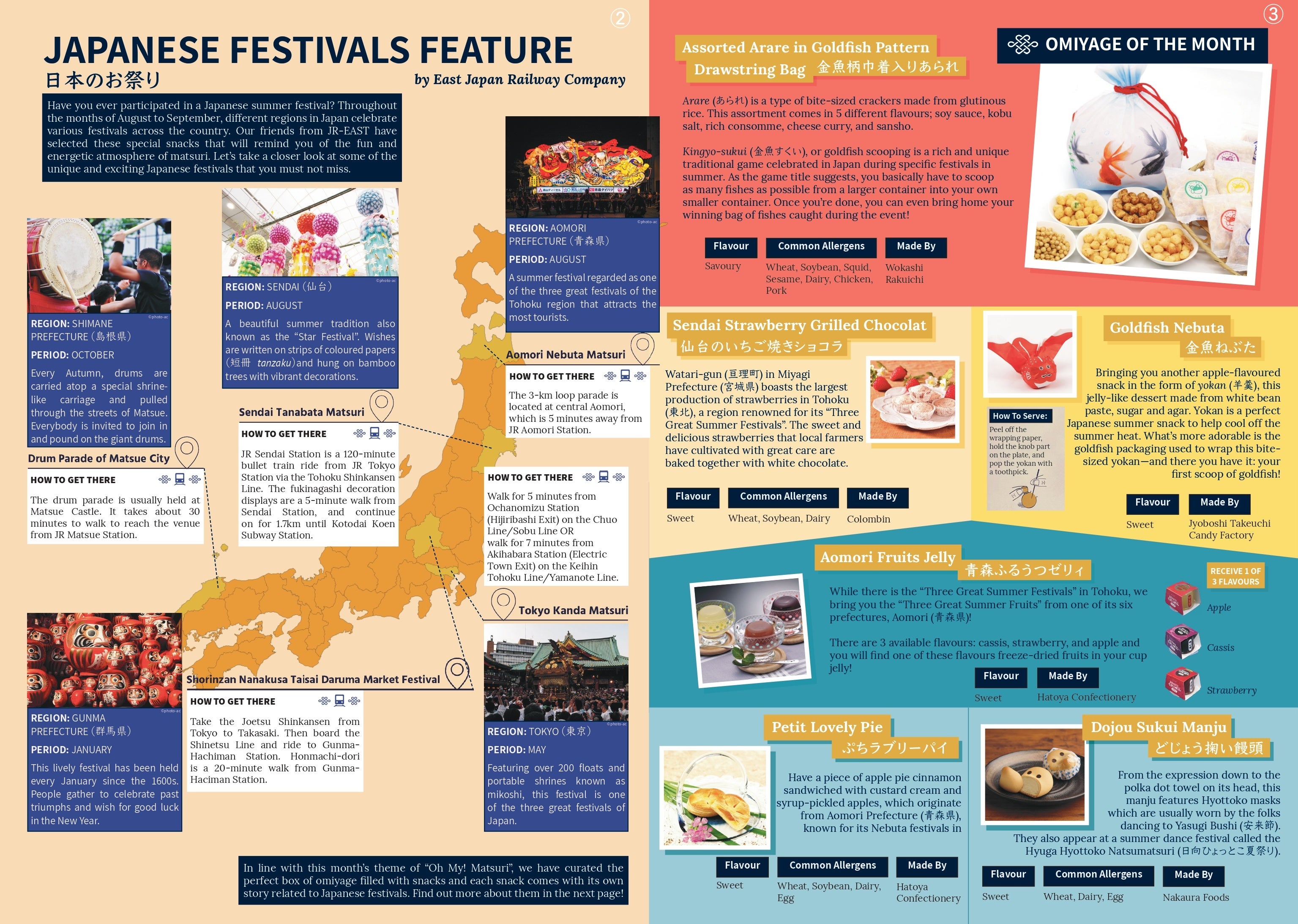 毎月テーマに沿って日本各地のお菓子・地産品などの詰合せボックスをお届けします。JR東日本グループの幅広い取引先ネットワークを活用して、商品選定を行います。また、ECサイトや小冊子を通じて、商品の背景や日本文化をお伝えするとともに商品選定に込めた想いなどを発信していきます。