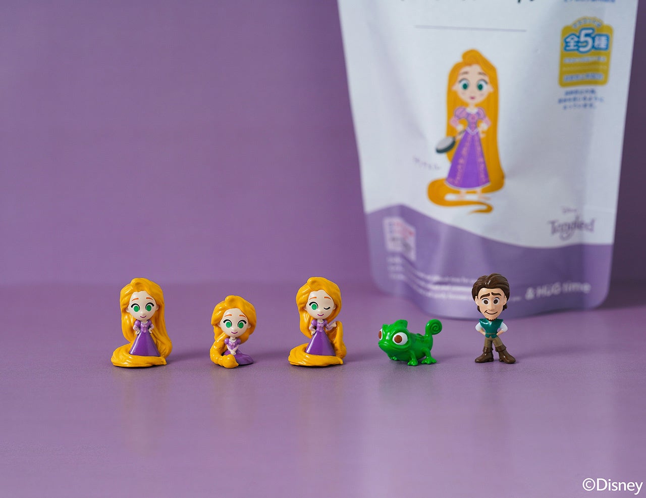 ディズニー・アニメーションの人気作品『塔の上のラプンツェル』の人気キャラクターが登場!美しいロングヘアが特徴的なラプンツェルや友達のパスカル、一緒に旅をするユージーンのラインナップ。