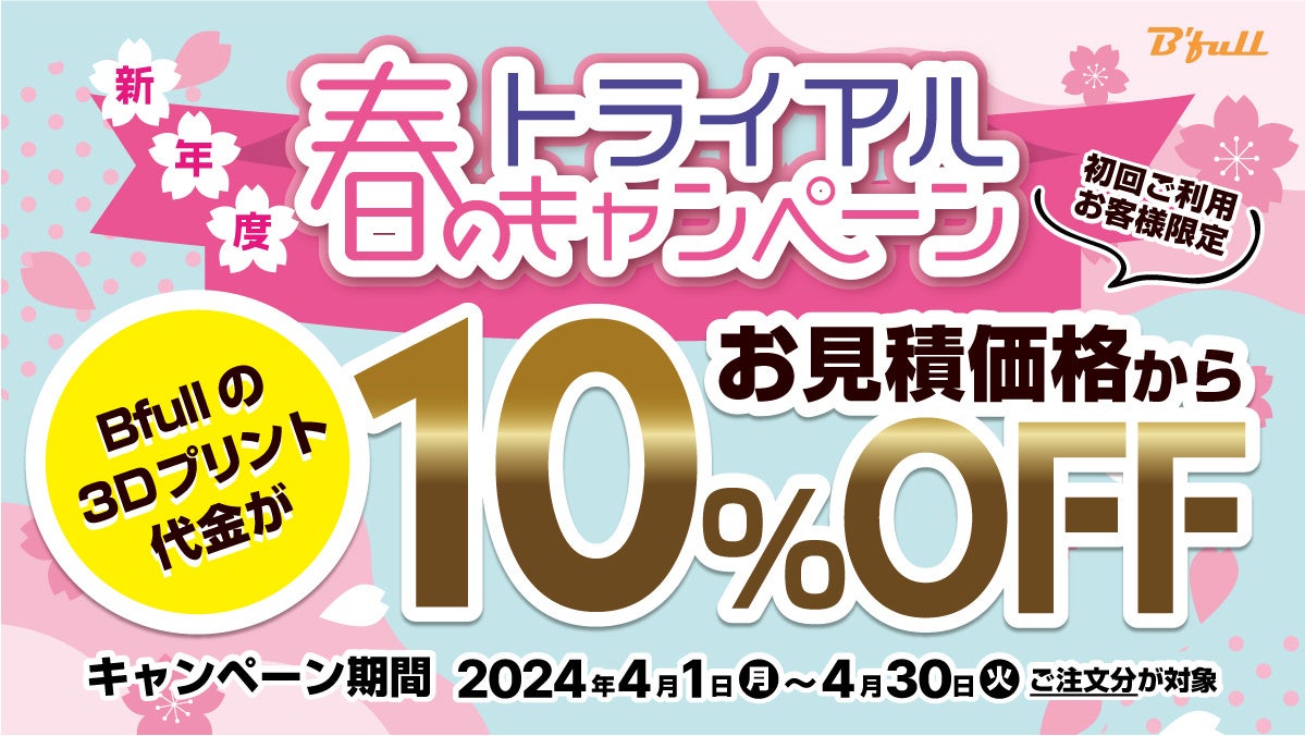 【4/1~4/30限定】初めての3Dプリント「春のトライアル10%offキャンペーン」開催決定!
