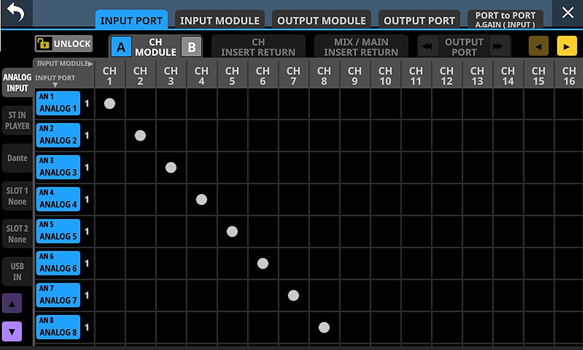 視認性と操作性に優れたルーティングマトリクス画面を新たに追加しました。すべてのチャンネルや入出力ポートのアサイン設定を素早く確認、設定が可能となります。