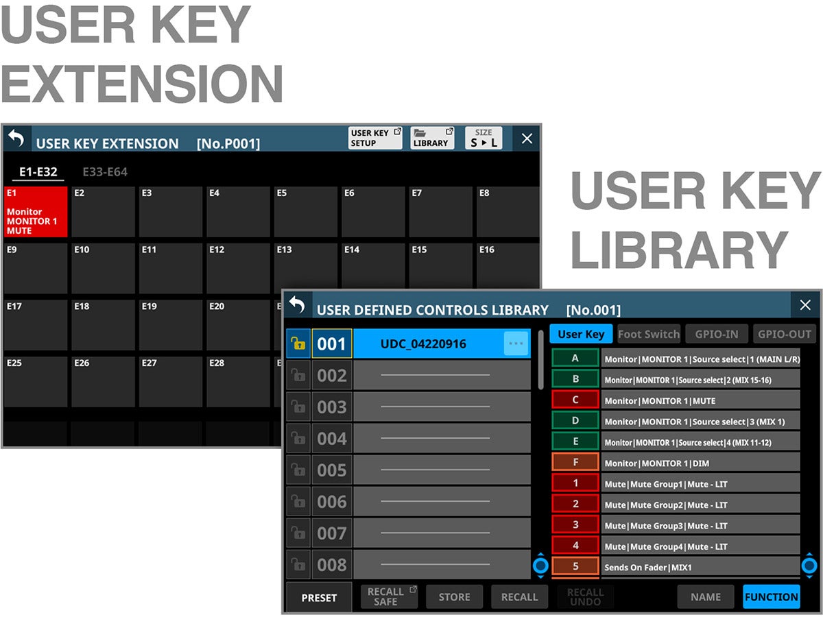オペレーターや現場により異なるユーザーキーの設定を保存・呼び出しができるユーザーキーのライブラリー機能を新たに追加しました。