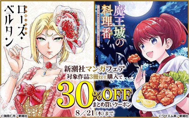 【概要】対象となる新潮社マンガ作品のうち、3冊以上まとめてご購入いただくと、30%OFFクーポンが利用可能