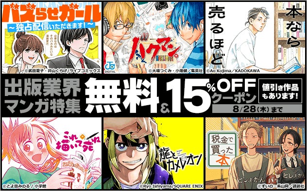 【概要】BookLiveの編集者が厳選した、図書館司書、漫画家、編集者など、出版に携わる仕事を描いた作品を対象に、無料・試し読み増量・15%OFFクーポン・値引きを実施