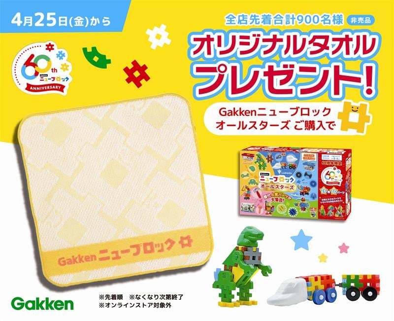 全国のトイザらスで、「Gakkenニューブロック オールスターズ」ご購入者に《いちばんくんオリジナルタオル》(非売品)をプレゼント。