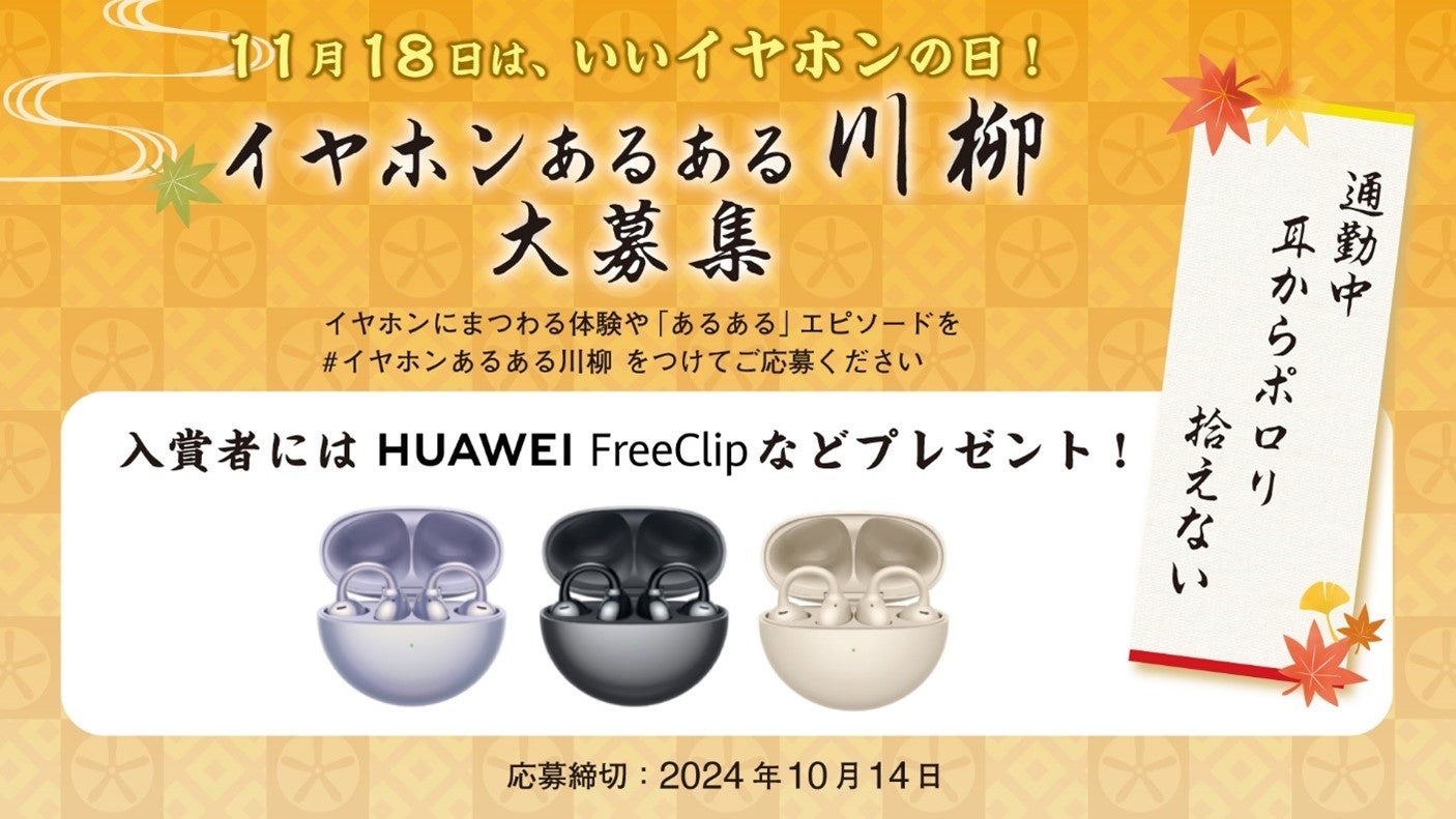 華為技術日本株式会社(ファーウェイ・ジャパン)は、イヤホンに関する体験や「あるある」を川柳に込めてX(旧Twitter)にて投稿いただくと、優秀作品に豪華景品を贈呈するキャンペーンを、2024年9月20日(金)~10月14日(月・祝)に開催します。