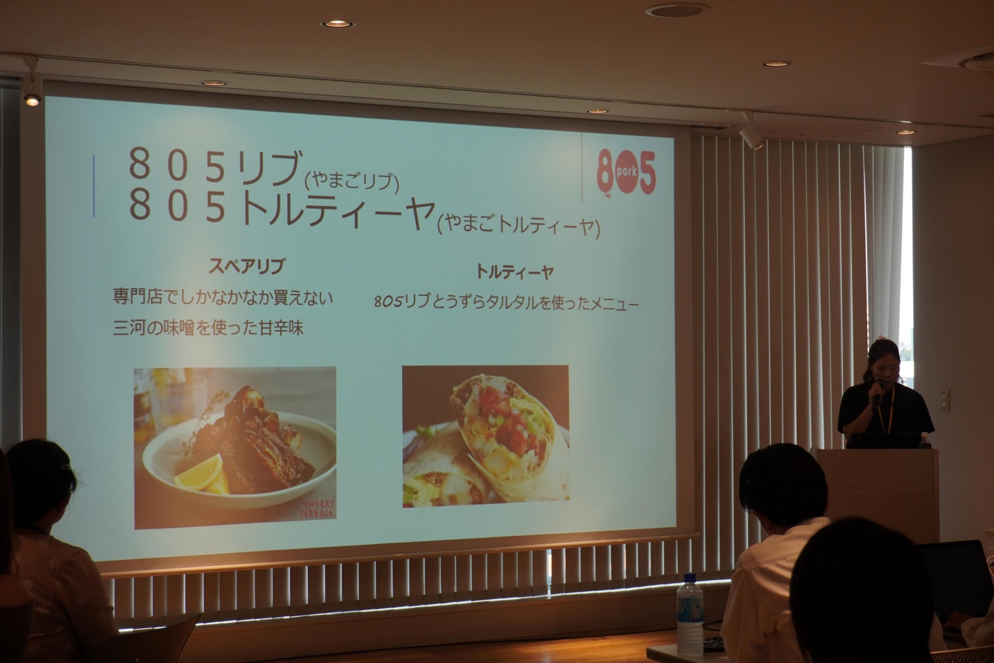 プレゼンする豊橋市住みます芸人のナミトさん。ウズラの消費を加速させるために全力でプレゼンを行いました!