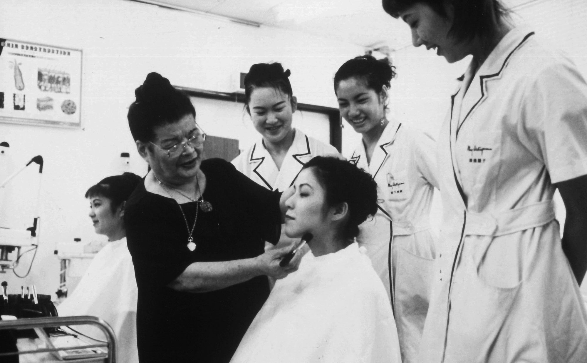 ハリウッドビューティグループの創業者夫妻、牛山清人と美容家のメイ牛山は、サロン経営、化粧品研究開発製造販売だけでなく、美容師や美容家を育成する教育事業として美容専門学校を展開し、2025年に創業100周年を迎えます。美容専門学校の初代校長で美容家のメイ牛山は、後世に自分の知識や技術を惜しみなく伝えることに力を入れ、晩年メディアの取材や執筆活動を続けました。特に美容家育成のための情熱は強く、学校の授業にも積極的に顔を出していました。その思いは、ジェニー牛山現校長に引き継がれ、多くの美容家を輩出しています。