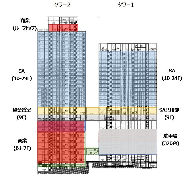 規模 | タワー1:地上24 階 タワー2:地上29 階 地下1 階 |