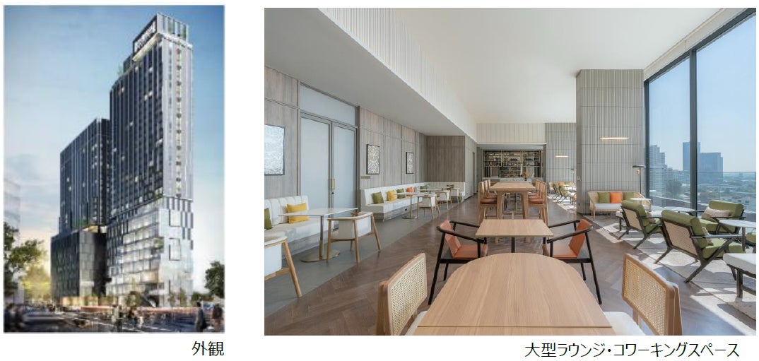 本案件は2020年1月に開業した「Staybridge Suites Bangkok Thonglor(※1)」に次ぐ、当社のタイにおける2案件目のSA・ホテル事業です。前案件に続きIHGホテルズアンドリゾート(以下、IHG)が運営を行います。日本人駐在員が多く居住する「プロンポンエリア」に位置することから、日本人利用を想定しており、共用部には大浴場、サウナ、ゴルフシミュレーター、大型ラウンジ・コワーキングスペース等を設置し、また居室内は収納スペースの確保やウォシュレット設置などの機能性向上を図っております。商業施設「Neighbor24」には、タイにおいて13年ぶり5店舗目となるフジスーパーや、物販店としては東南アジア初出店となるKALDI COFFEE FARMなどの日系テナントが開業しております。