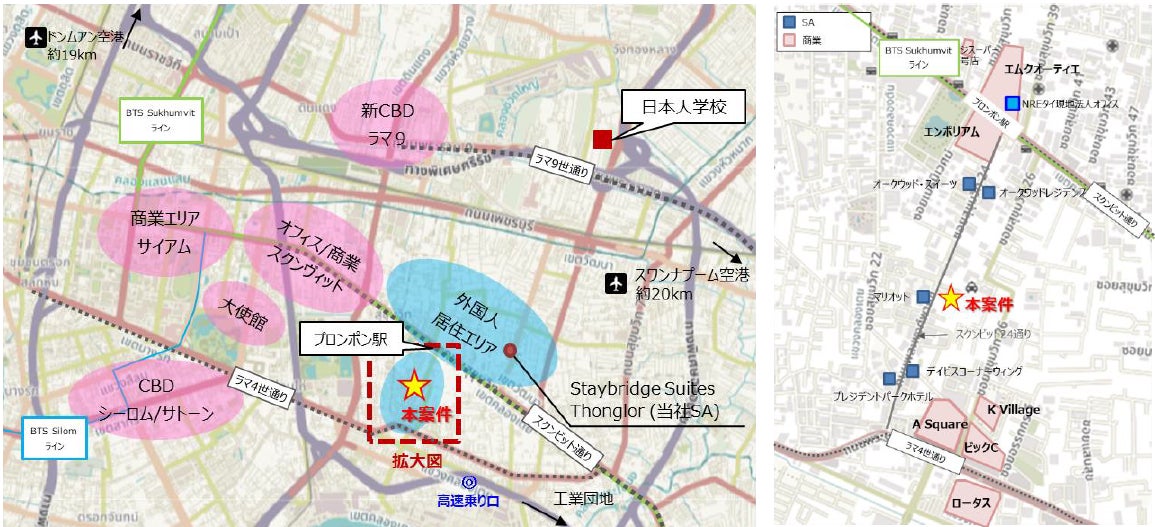 ■本リリースのポイント ①タイにおいて2棟目となるSA・ホテル「Staybridge Suites Bangkok Sukhumvit」がグランドオープン ②日本人をターゲットとした施設であり、全戸にウォシュレットを配備、共用部には大浴場サウナ、ゴルフシミュレーター等を設置 ③同一建物内の商業施設「Neighbor24」にはフジスーパーやKALDI COFFEE FARMなど、多様な日系テナントが営業 |