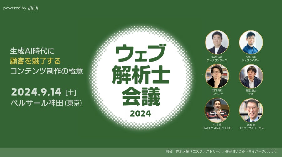 2024/9/14(土)13:30〜18:45 ベルサール神田でウェブ解析士会議2024「生成AI時代に顧客を魅了するコンテンツ制作の極意」を開催します