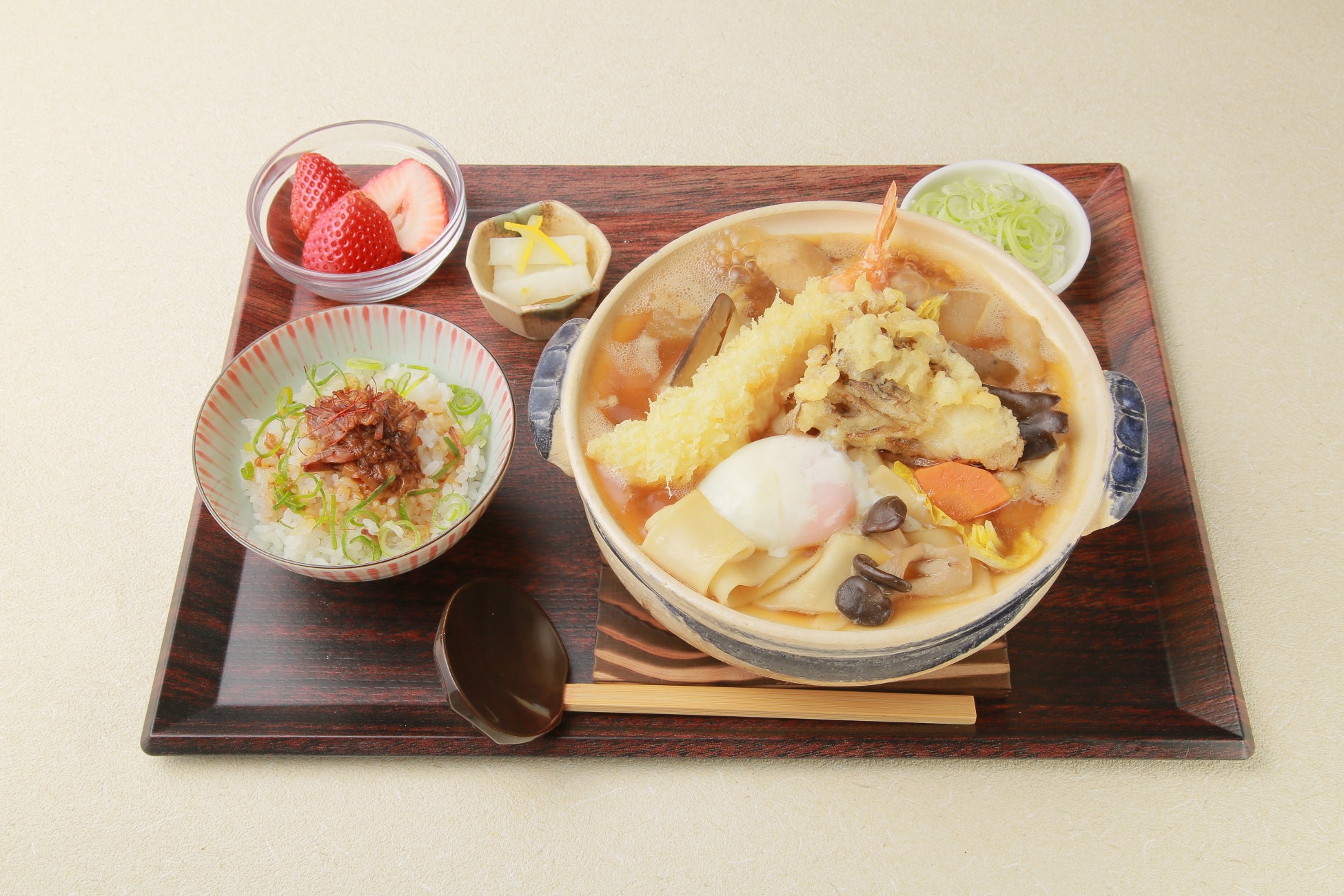 館内に併設されたお食事処 上州名物すき焼きと郷土料理「里山本陣」では、地元・群馬の食材をふんだんに使用した料理をご提供しております。なかでも当店のおすすめは、黒毛和牛を使用した「すき焼き」。地元の新鮮野菜と黒毛和牛の旨味が重なり合い、赤城山麓の天然水を使用して飼育された朝採れ玉子にくぐらせれば、贅沢な味わいが口いっぱいに広がります。さらに、ご注文をいただいてから丁寧に炊き上げる釜炊きご飯と一緒にお召し上がりいただくことで、心もお腹も満たされる至福のひとときをお楽しみいただけます。そのほか、上州の郷土料理をはじめとした多彩なお料理をご用意。お食事のみのご利用も可能ですので、ランチやディナーはもちろん、旅の途中の休憩にも、気軽にお立ち寄りください。
