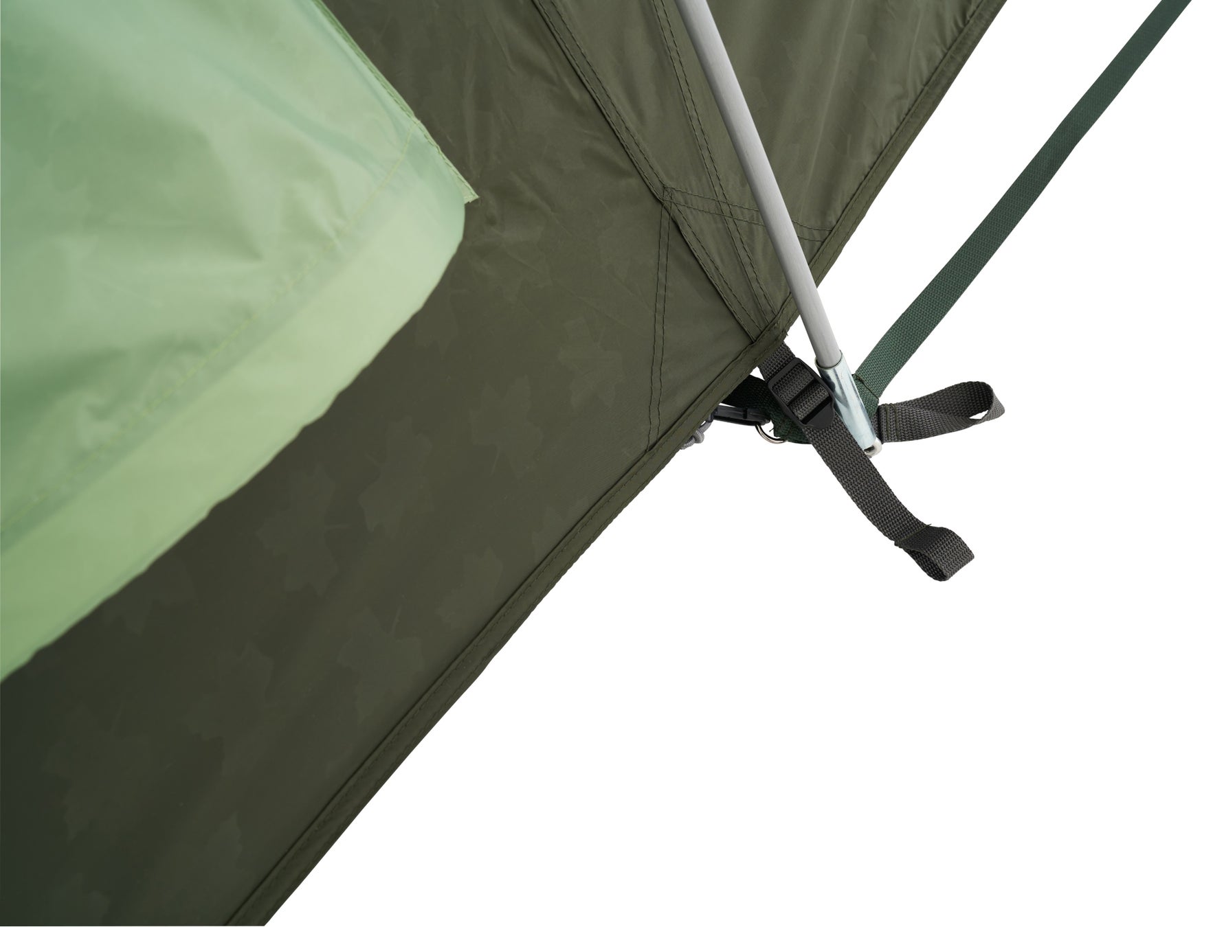 さらに、より簡単にテントを設営できるLOGOS独自の構造「SUPPORT BELT SYSTEM」も採用しています。設営時は調整可能なベルトを緩めた状態にすることで、フレームを差し込みやすくなりました。差し込んだ後はベルトを短く締め、簡単かつ余分な力を使うことなくテントを張ることができます。また、フレームをリングピンから簡単に外すことができるのでスムーズに撤収が可能です。