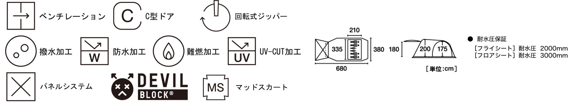 耐水圧 :[フライシート]2000mm