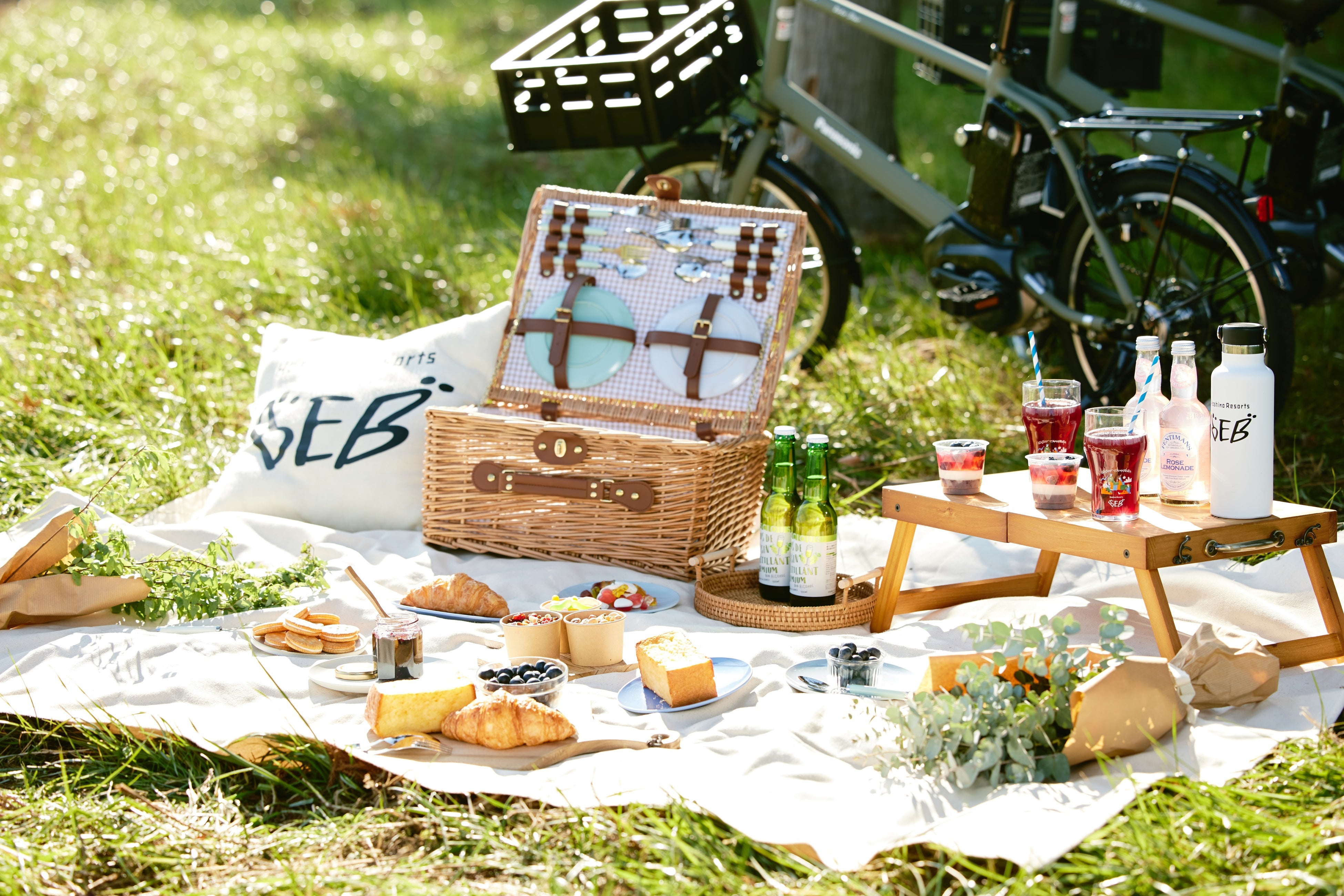 朝の涼しい時間帯にホテルから片道7.5km、45分ほどのブルーベリー農園までカーゴ付きE-bikeで向かいます。カーゴ付きE-bikeには、地元で愛されるクーロンヌのパンやさしま和紅茶など軽食が入ったピクニックバスケットやピクニックシート、折りたたみテーブルなどのおしゃれなピクニックセットを積み込み、農園までのサイクリングを楽しみます。