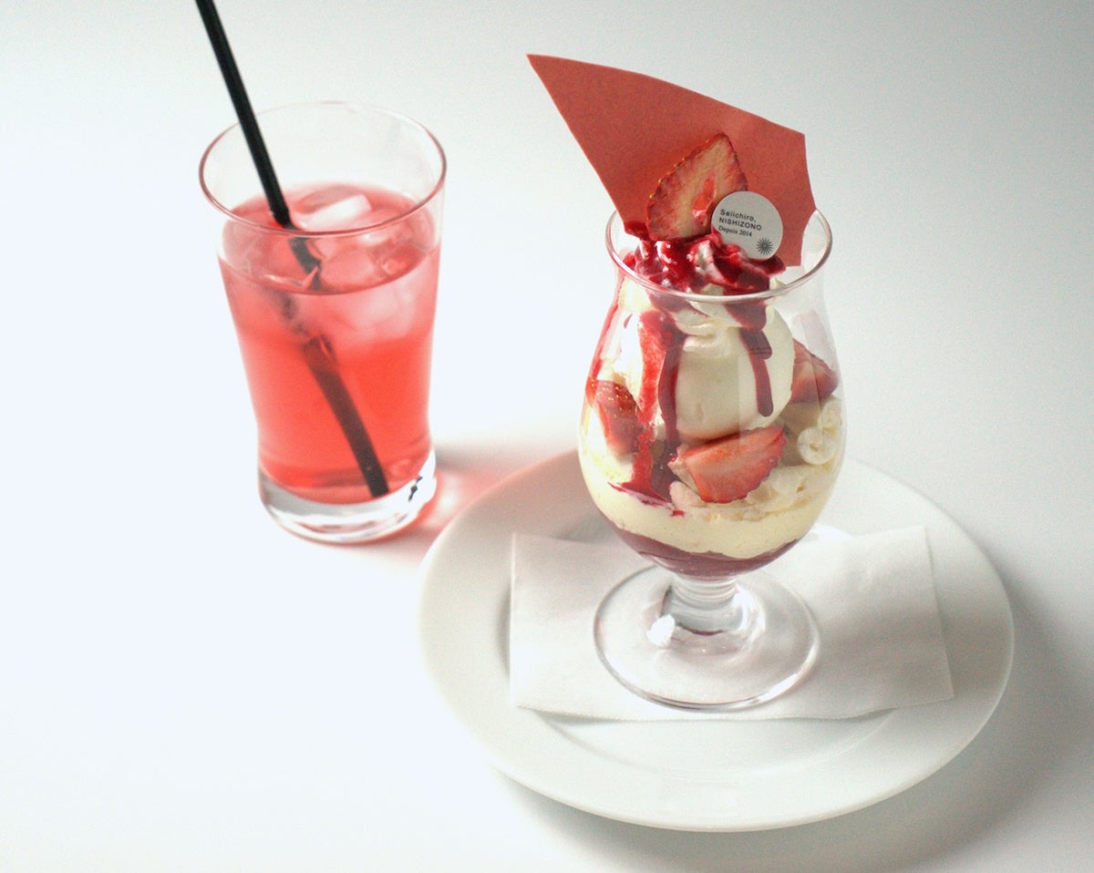 旬のフルーツを贅沢に使い、味の構成を楽しめる日替わりパフェ。ランチ後でも心地よく味わえるバランスで仕立てています。フレーバードティーなど4種から選べるドリンク付き。