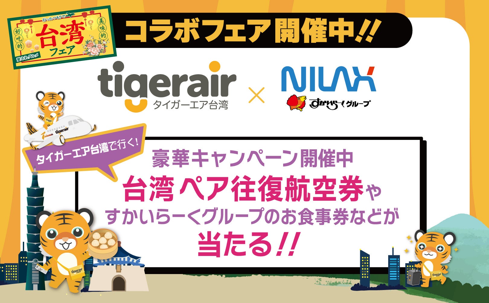 豪華!台湾行きの『ペア往復航空券』や、すかいらーくグループのお食事券が当たる!タイガーエア台湾とのコラボフェアも同時開催!