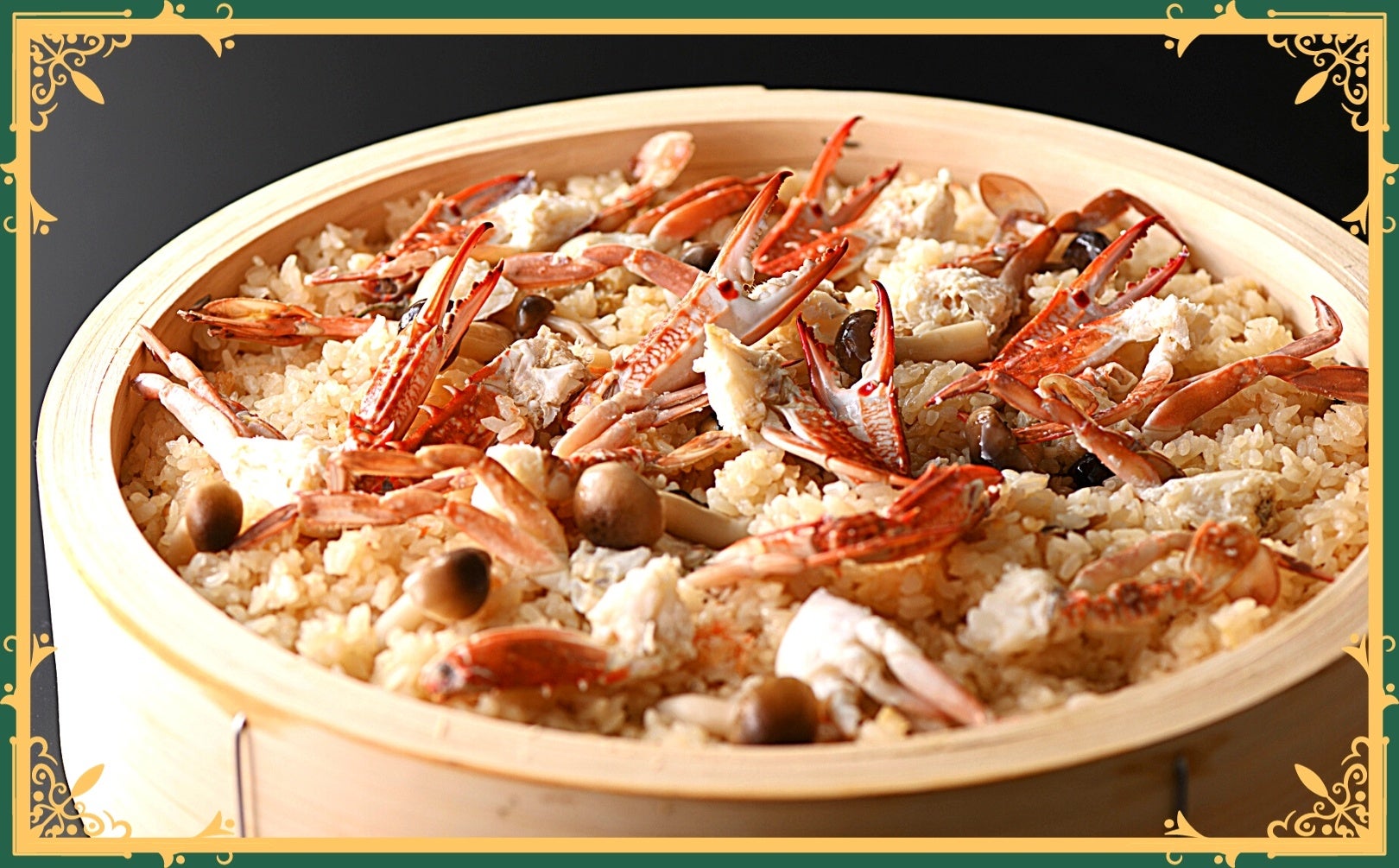 たっぷりしみ込んだ蟹の旨みと生姜の風味、そして、もち米のモチモチ食感がたまらない一品となっております。