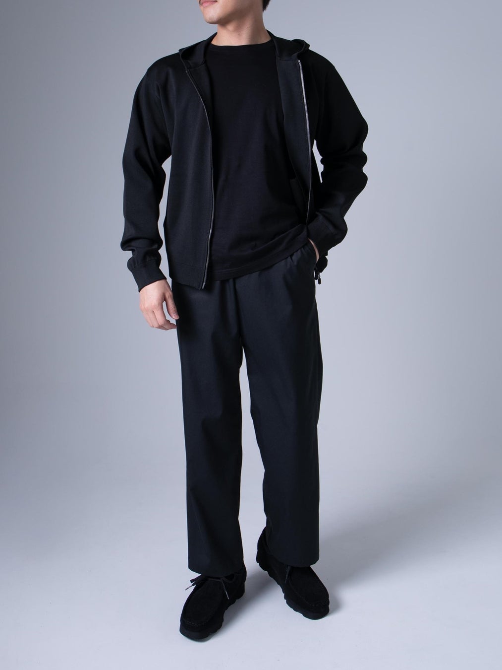 特徴:タフで高機能な特殊糸を使用した、ニットジップアップパーカー。絶妙な光沢とハリ感に加えて、驚きの伸縮性と柔らかな肌触りで、癖になる抜群の着心地を実現。