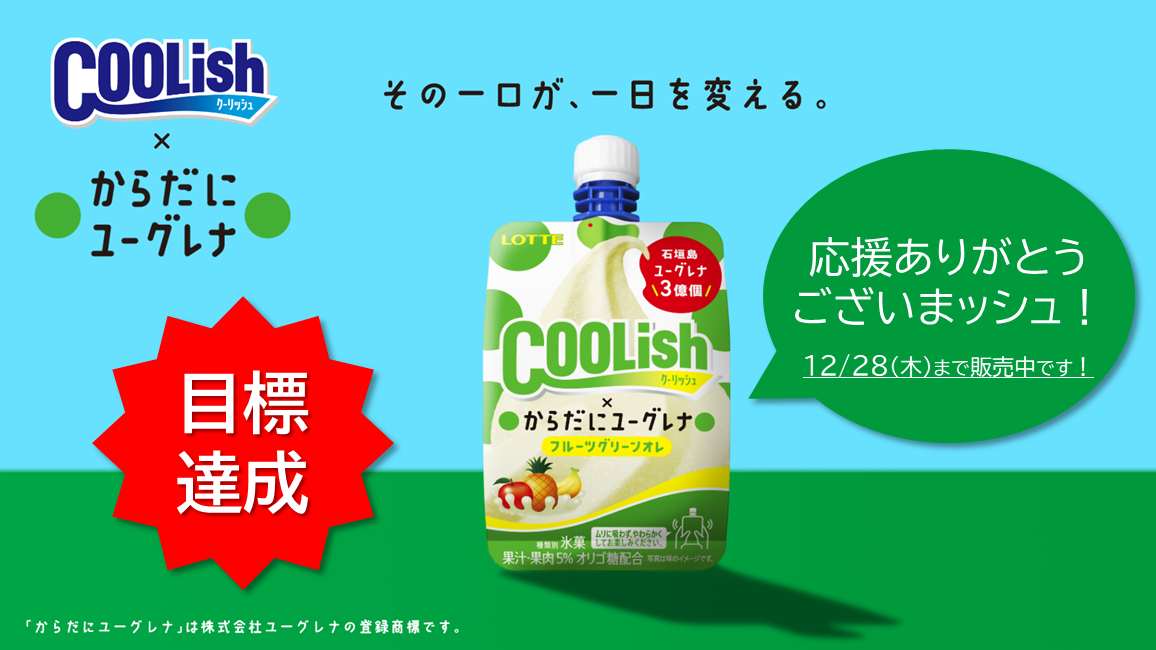 応援金額100%を達成!『クーリッシュ×からだにユーグレナ~フルーツグリーンオレ~』商品化決定