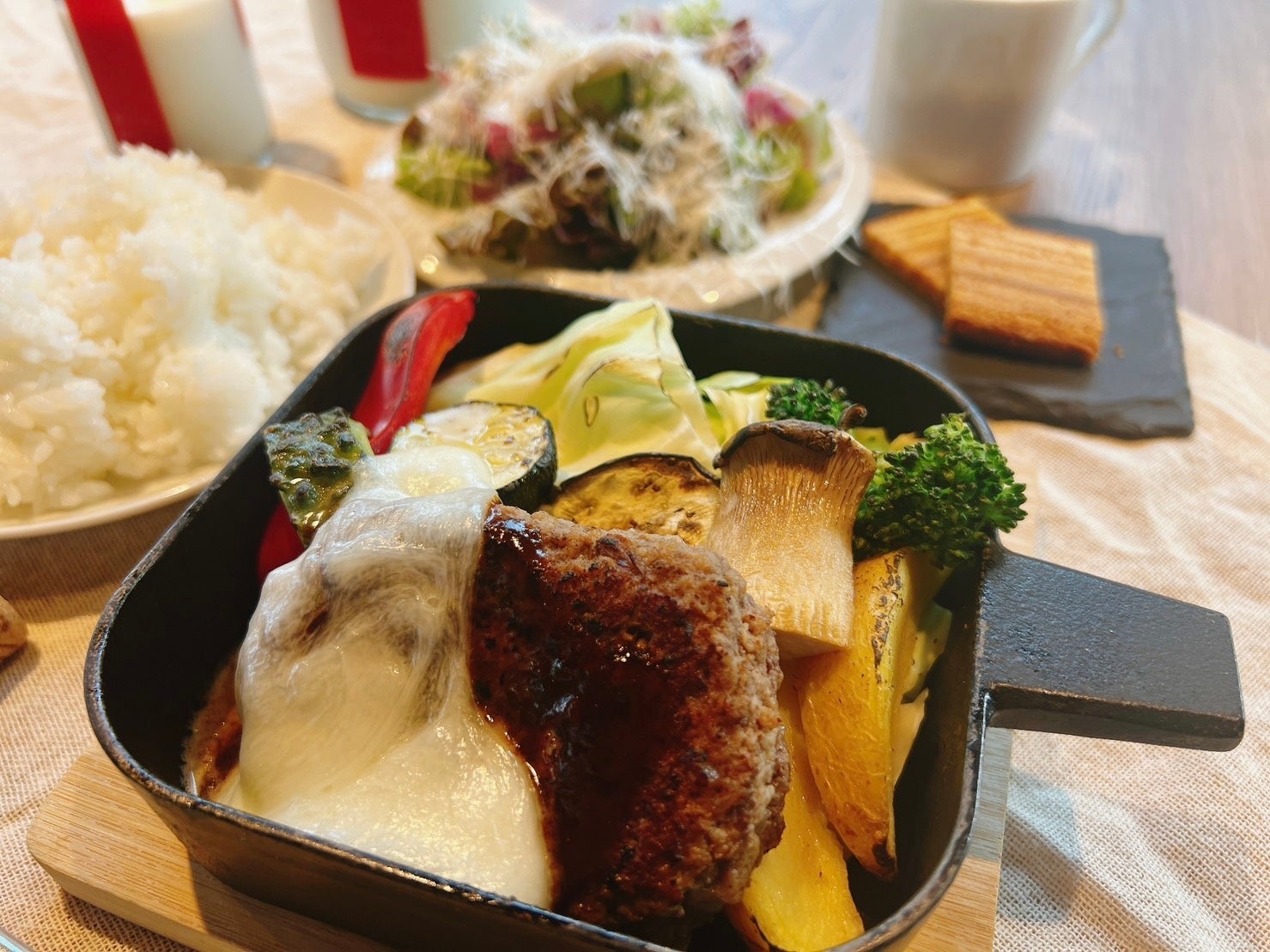 ・昼食は阿蘇のあか牛ハンバーグセットをご用意!