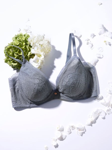 繊細なレースを贅沢に使いながらも、シンプルかつ上品なデザイン。ひと雨ごとに深く色づくアジサイの花の魅力的な美しさを、ストレッチリバーレースで表現した人気シリーズです。今シーズンは優しい雰囲気ながらにモダンな印象のグレー、グリーンが新色として登場します。