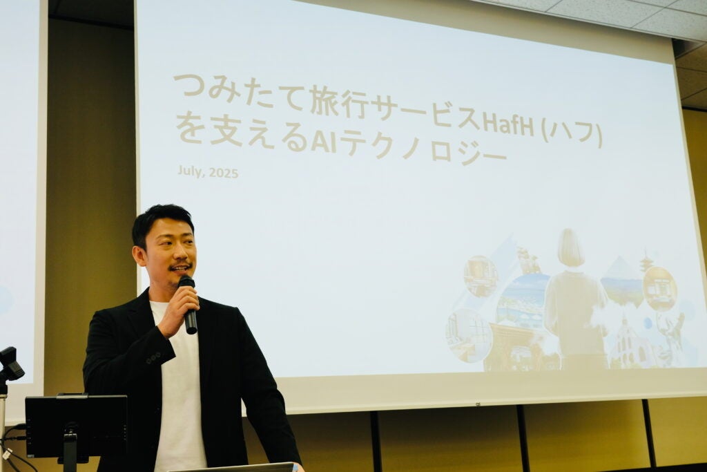 砂田氏は、創業から5年で会員数10万人を超え、今も急成長を続けるつみたて旅行サービスHafH。その運営会社であるKabuK Style (カブクスタイル) の創業者CEOの砂田が、創業からの軌跡をテクノロジーの観点から本邦初公開。月次継続率が驚異の99%を超えるマーケティング戦略や、そのユーザー体験を支える価格とユーザー行動の予測モデルとリスクマネジメント手法、10年後に考えられる旅行業界のAI活用可能性についてお話しいただきました。