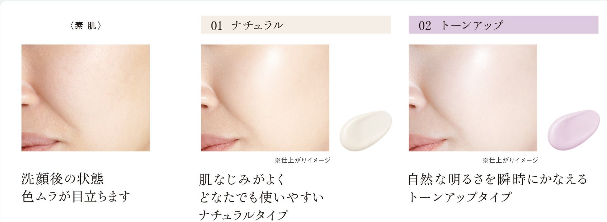 〇お好みに応じて、2色のナチュラルタイプ、トーンアップタイプからお選びいただけます。