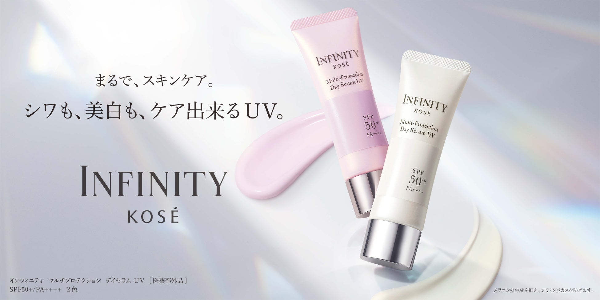 株式会社コーセー(本社:東京都中央区、代表取締役社長:小林 一俊)は、企業名「KOSÉ」を冠するハイプレステージブランド『インフィニティ』から、紫外線をカットしながら2つの有効成分で「シワ改善」と「美白」のW効能を叶える大人のための日中用美容液を、2024年3月16日より全国の『インフィニティ』取り扱い店舗(ドラッグストア、GMS)とMaison KOSÉ(直営店とオンラインサイト)、一部ECなどで発売します。