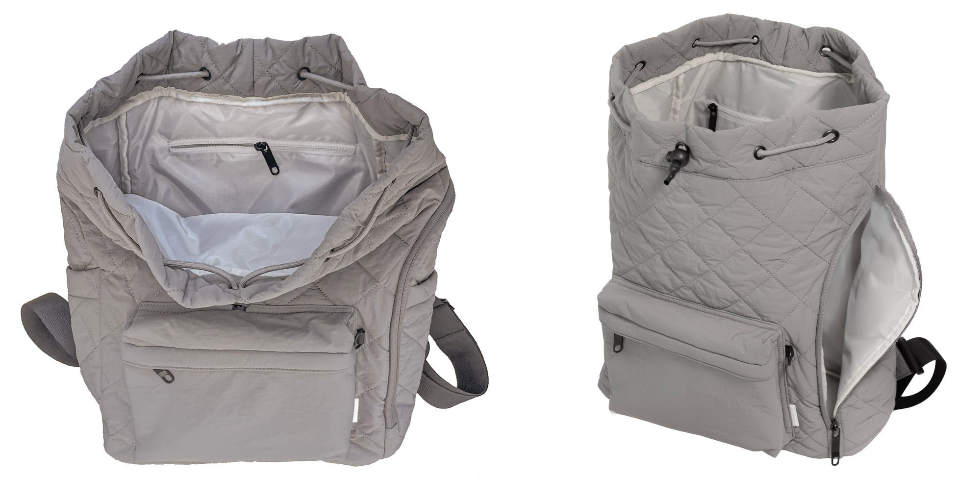 巾着タイプ設計×大きなサイドファスナーで荷物の出し入れの煩わしさを軽減